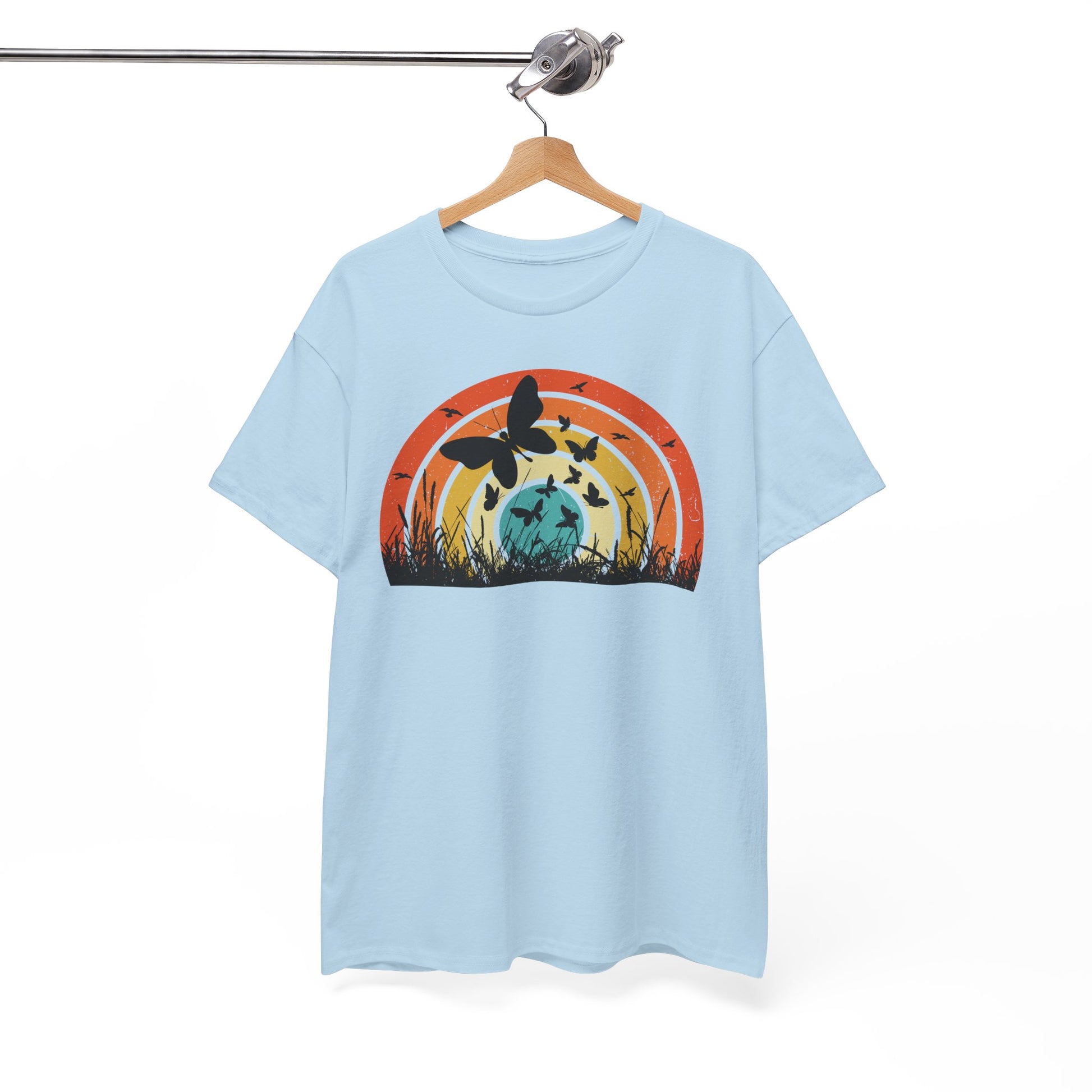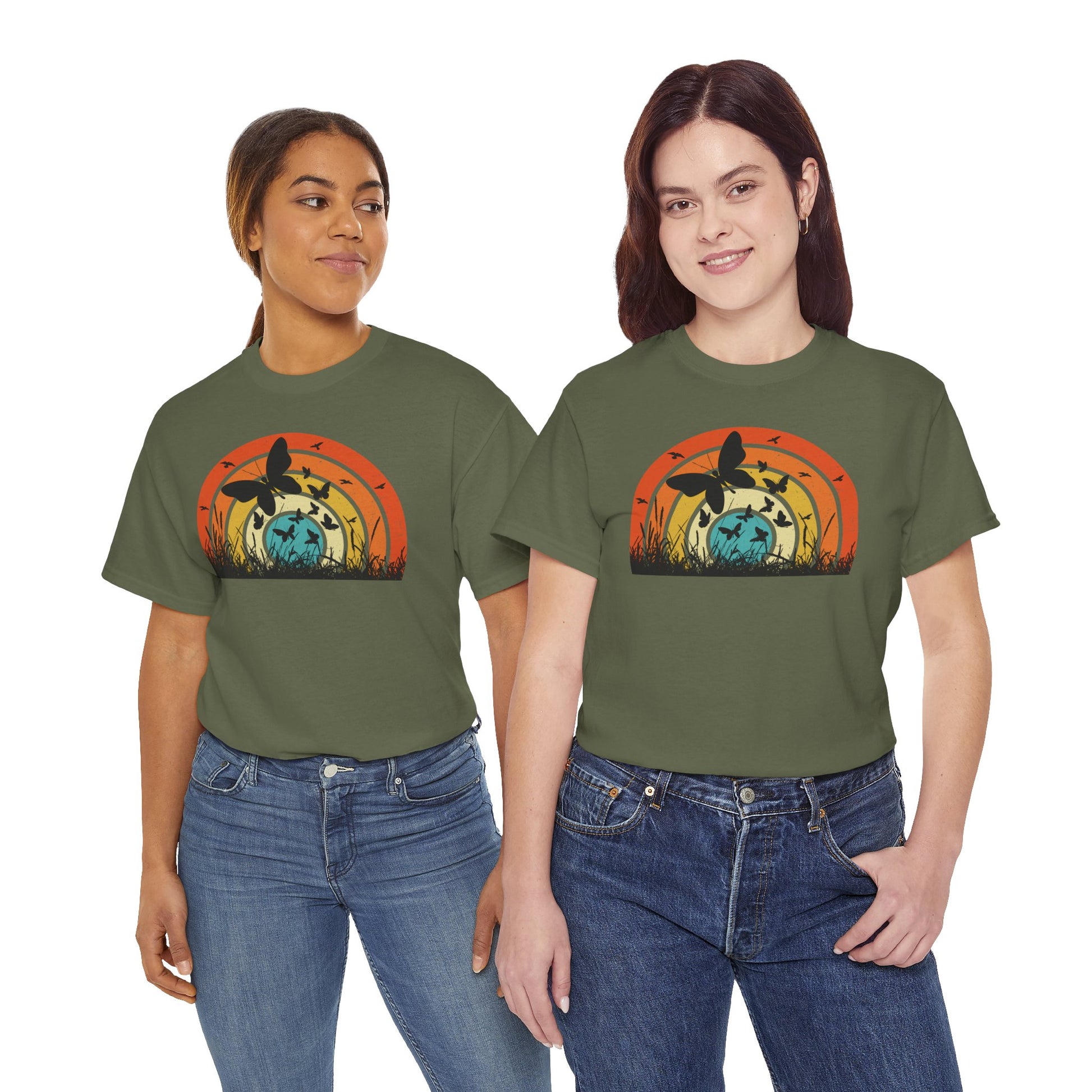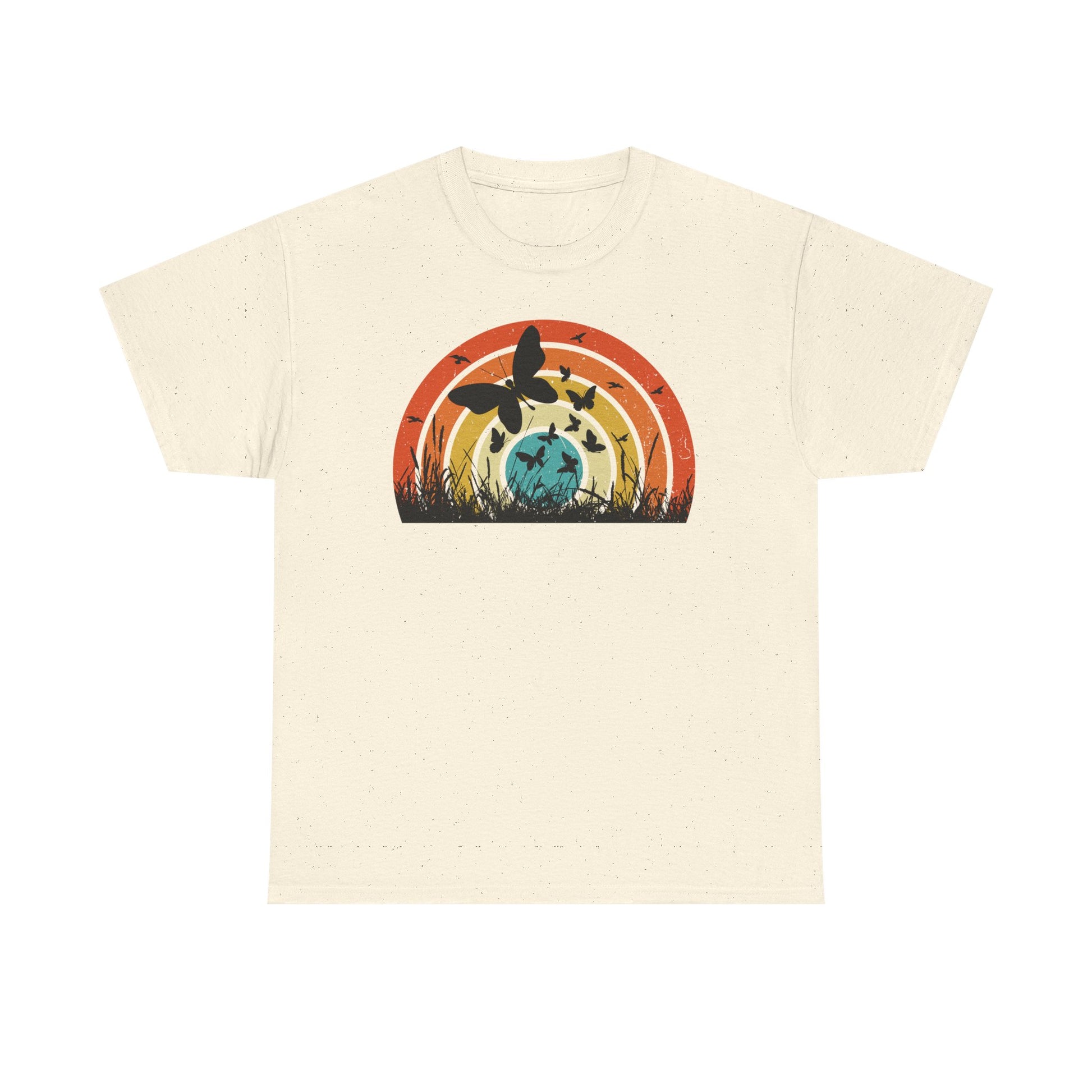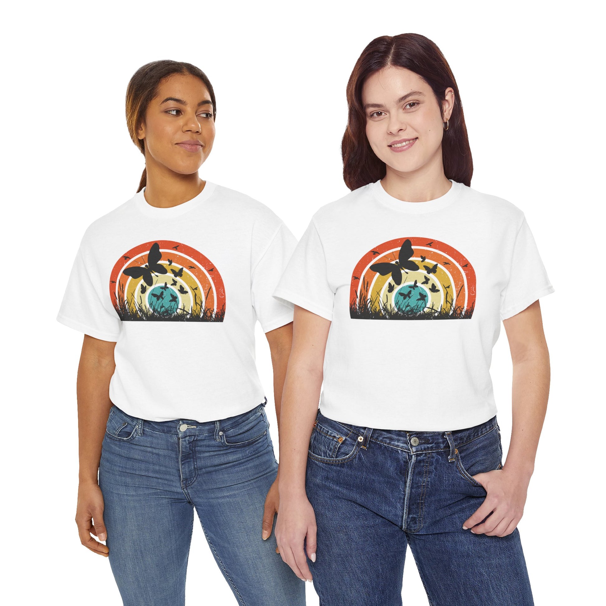 This T-Shirt features a butterfly design with a retro, vintage, pretty, cool vibe. Made with 100% Airlume combed and ring-spun cotton, this lightweight fabric is perfect for layering and breathable for active and leisure wear. The retail fit and crew neckline add a classic and neat style, making it versatile for casual and semi-formal settings. Ideal for those who appreciate unique and stylish graphic tees, this T-Shirt is perfect for everyday wear or special occasions.