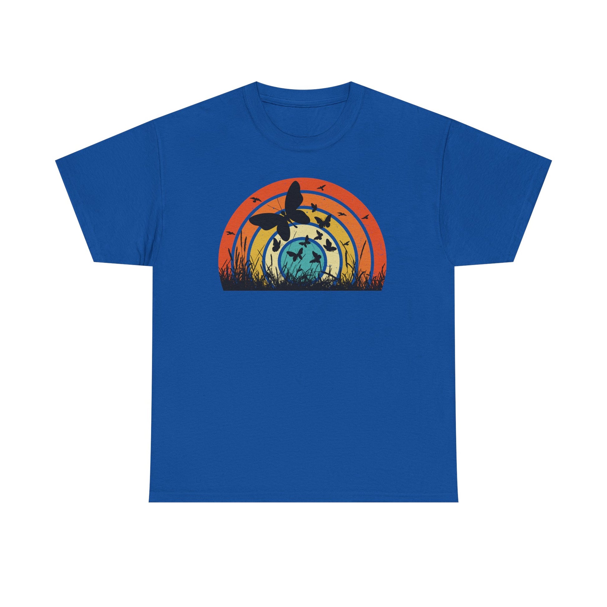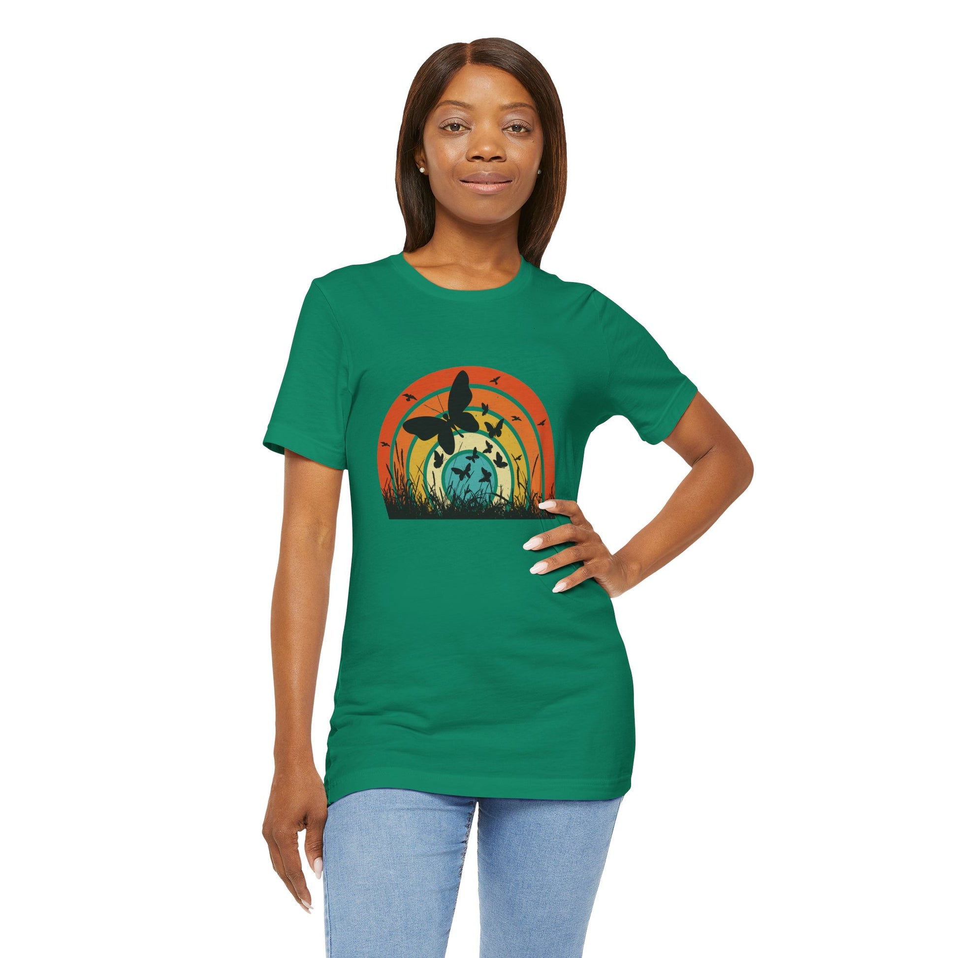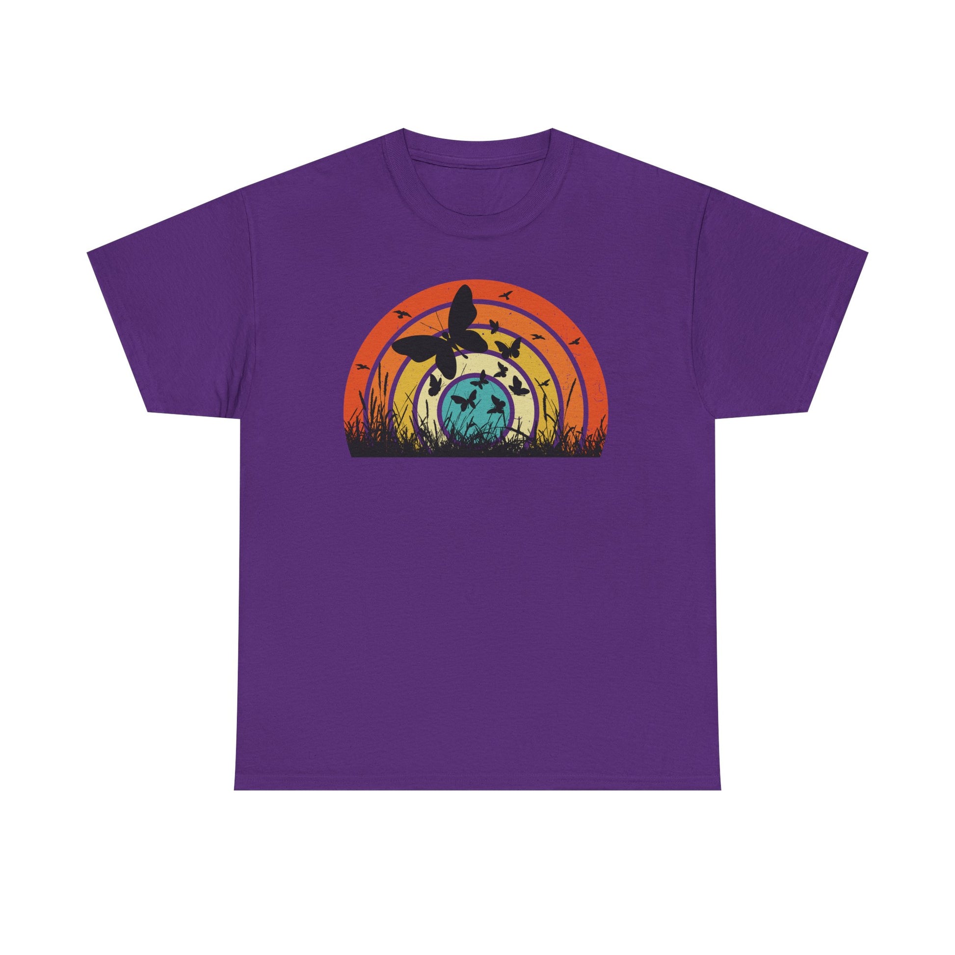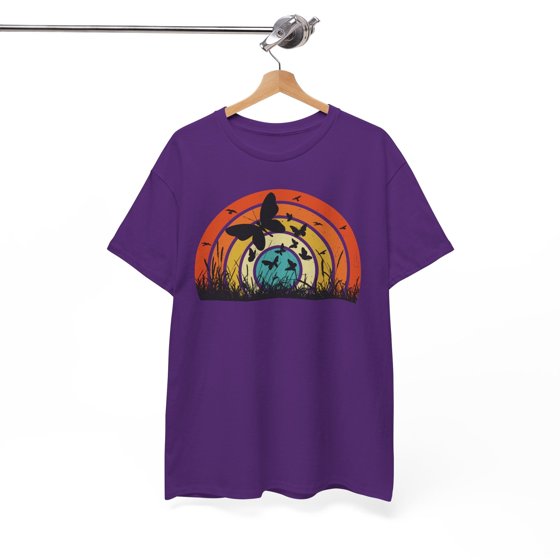 This T-Shirt features a butterfly design with a retro, vintage, pretty, cool vibe. Made with 100% Airlume combed and ring-spun cotton, this lightweight fabric is perfect for layering and breathable for active and leisure wear. The retail fit and crew neckline add a classic and neat style, making it versatile for casual and semi-formal settings. Ideal for those who appreciate unique and stylish graphic tees, this T-Shirt is perfect for everyday wear or special occasions.