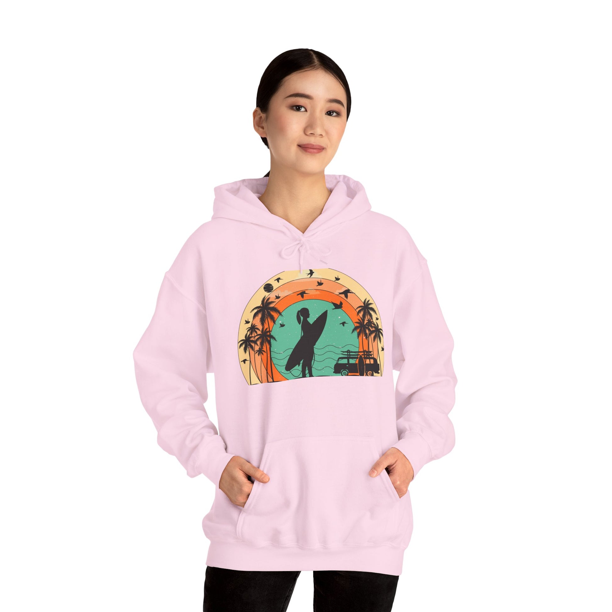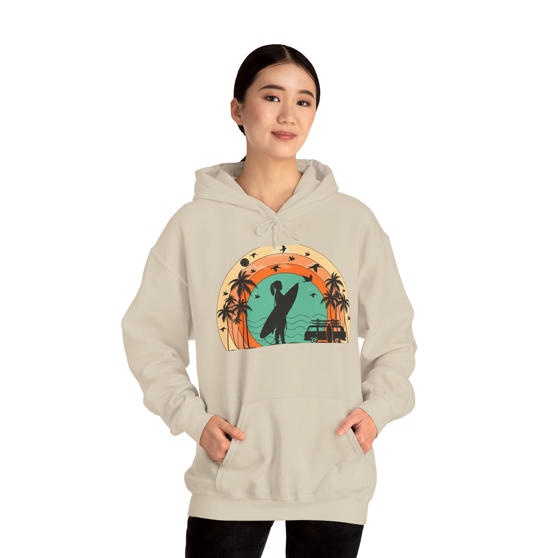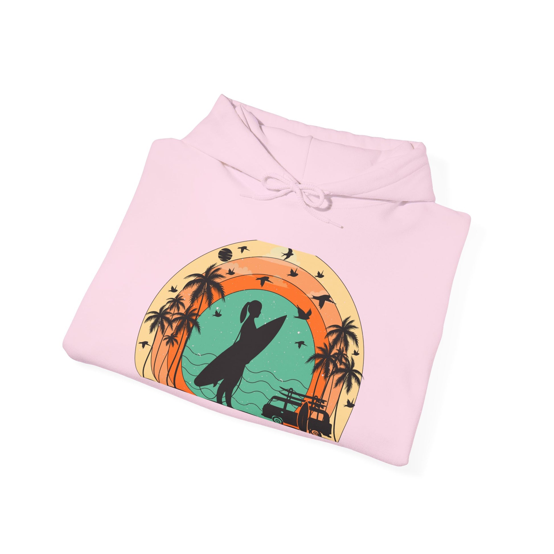 This vintage and retro Surfer Women Hoodie exudes cool and unique beach vibes. Perfect for those who love surfing and enjoy a laid-back style. Ideal for women looking for a cozy and stylish sweatshirt to wear on casual outings or chilly nights. Relevant for beach vacations, summer celebrations, and surf-themed events.